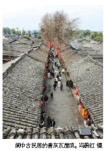 当我再次看到“阆”字,是在“阆中”这个地名里。那时我已成为一名报社编辑。案头那些新闻或副刊稿件中的文字,那些黑白或彩色的照片,让一座历经千年、历尽沧桑、古香古色的县城的身影深深地印在我心底:好山好水相拥相依,贡院、张飞庙……还有一大片古民居那鳞次栉比的青灰瓦屋顶。